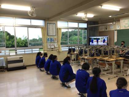 教室では、動画を見ながら練習しています。