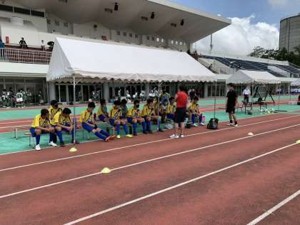今日は、サッカー部が市内大会です。前半終了で、1対0で勝っています。