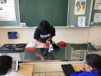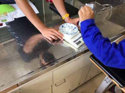 日本語の授業では、実物を使いながら体験的に言葉を覚えています。