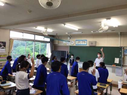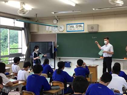 授業の様子です。英語には、ALTの先生がきています。