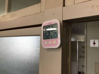 エアコンと扇風機を使っても気温が30度あります。水分補給をしっかり行います。