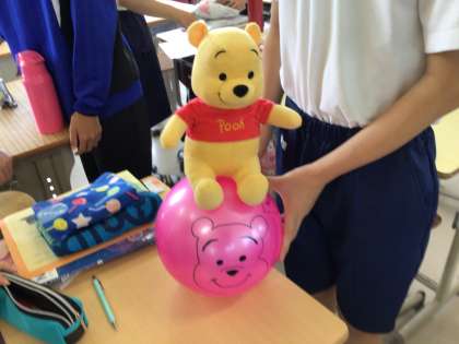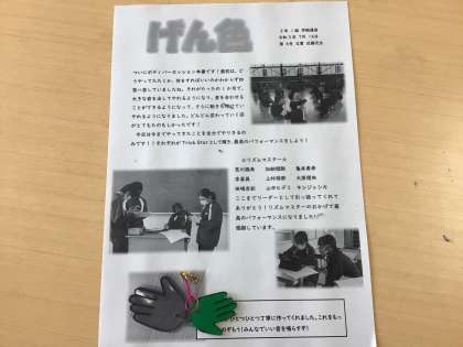ボディパーカッションの発表に向けて、学級の士気を高めています。