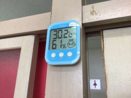教室の温度が高くなっています。今日は、帰宅後も熱中症に十分注意が必要です。夏休み中も外出には気をつけてください。