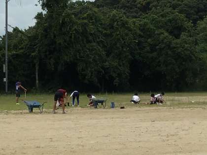 部活動の生徒もボランティアで草取りをしています。