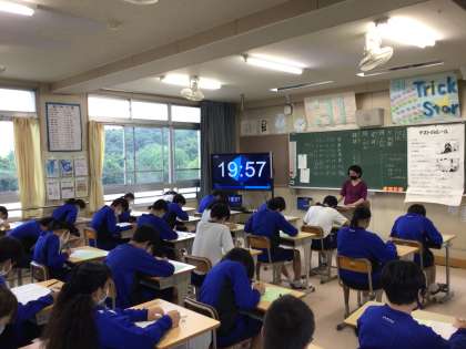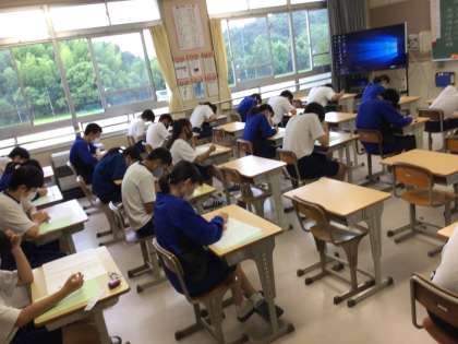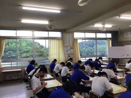 3年生は、1時間目から学習診断テストです。夏休みの学習の成果をどれだけ発揮できるか楽しみです。