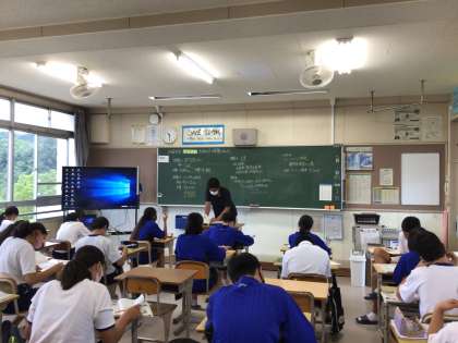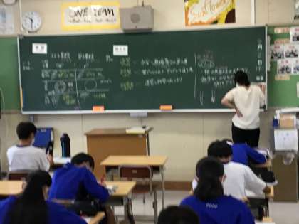 授業中は、話し合い活動などができません。真剣に先生の話を聞いています。