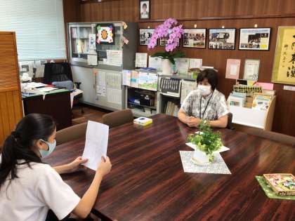 日本語教室の生徒が、校長室にプレゼン発表にきてくれました。