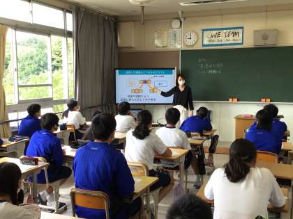 保健の授業に、養護教諭が入り、専門的な内容について説明しています。