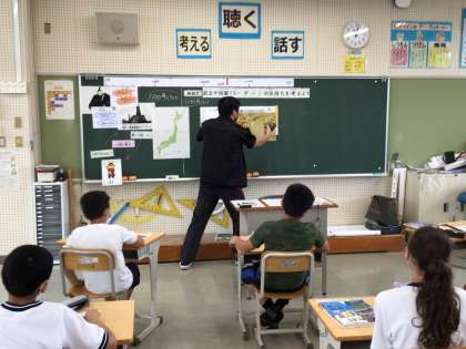 小中連携して日本語の授業研究をしています。社会科の授業です。