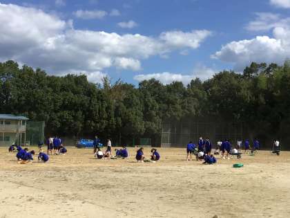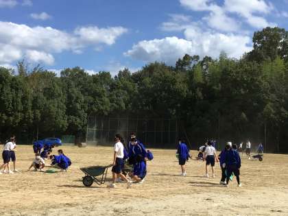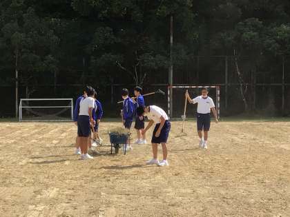 3年生のボランティア生徒がグランド整備をしています。ありがとうございます。