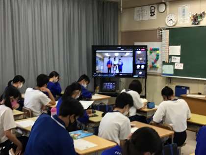 3年生の級長会の生徒が、リモート動画で修学旅行について説明しています。