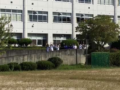 2年生の出発を見送っています。
