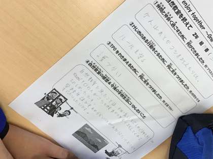 2年生は、朝の会で自然教室の振り返りをしています。