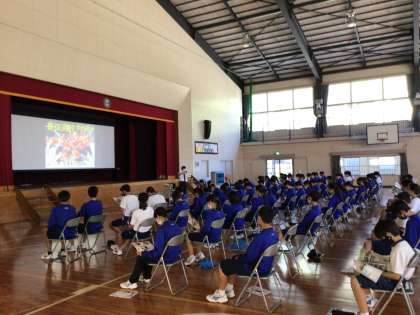 進路説明会を行っています。1年生は、教室でリモートで学習しています。
