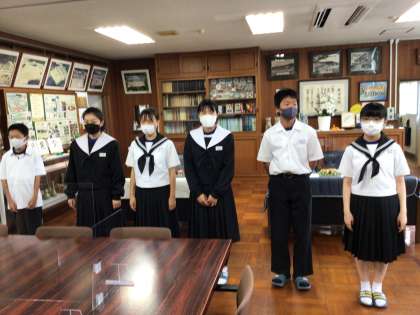 校長室で、生徒会役員、スタッフ長の認証式を行いました。学校を動かすリーダーの生徒たちです。