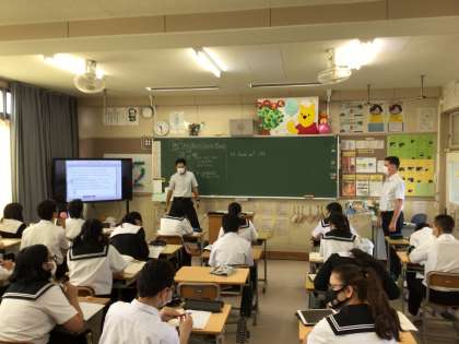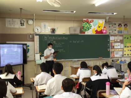 英語の授業です。ALTの先生も入っています。