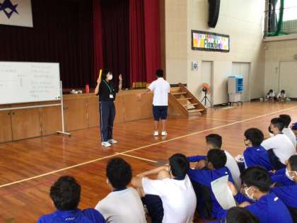 今日は、教育実習生さんの体育の研究授業です。実習の成果を確かめています。