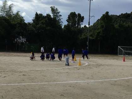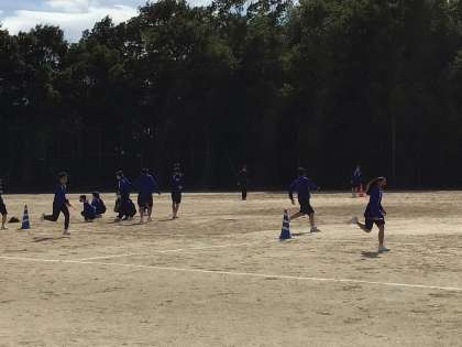 リレーの練習をしています。本番のように入場から行っています。