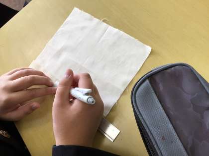 家庭科は作業の手順を電子黒板に示しています。