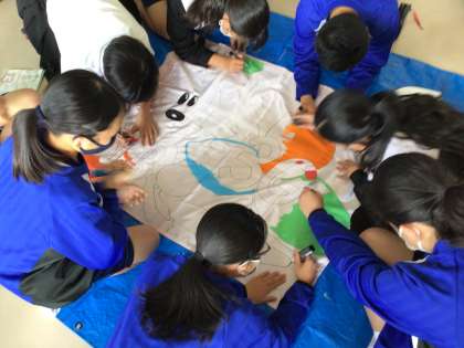 体育祭の学級旗づくりや作戦を考えています。