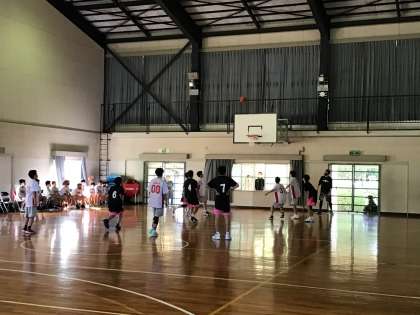 バスケットボール部男子が、練習試合をしています。