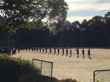 朝から体育さの練習をしています。気合が入ります。
