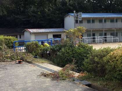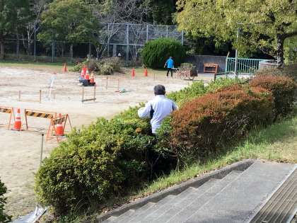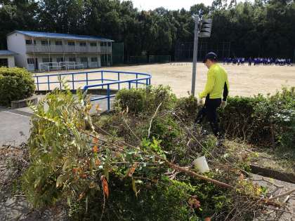 体育祭に向けて保護者の方が観戦しやすいように、樹木を切っています。