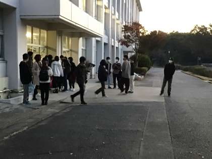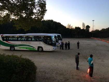 修学旅行当日です。生徒が登校し始めています。