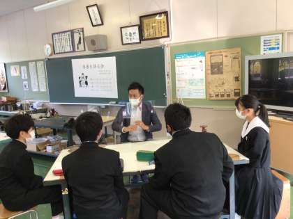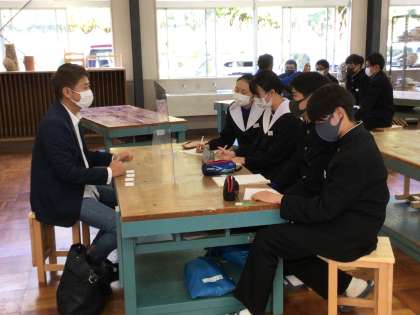 グループで講師の方から話を聞いたり質問したりしています。