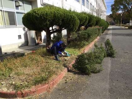 校務主任と校内整備員さんが、校内を清掃しています。
