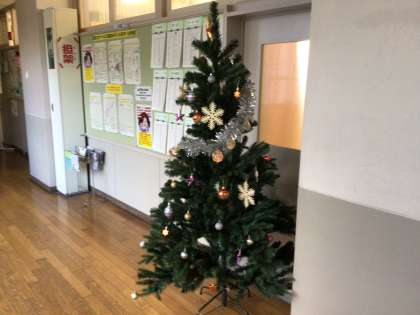 保健室の前にクリスマスツリーを飾りました。今年もあと一ヶ月です。