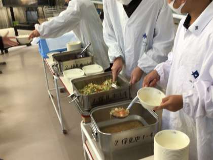 給食の準備をしています。