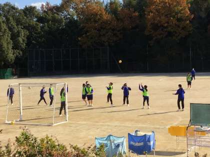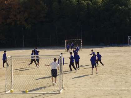 体育で、ハンドボールをしています。ゲームの時間を楽しんでいます。
