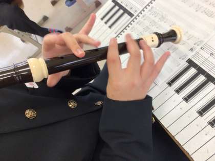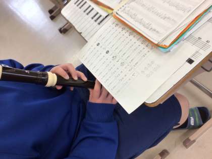 6、7、8学級の音楽の授業でリコーダーを練習しています。