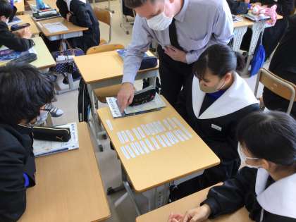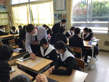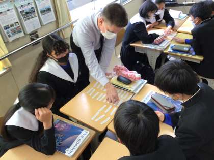 英語では、ALTのジョン先生と英作文についてグループで活動しています。
