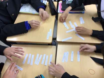 正しい英作文をグループで考えます。