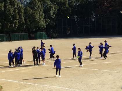 5時間目の前の放課です。授業の前からグランドに出て体を動かしています。