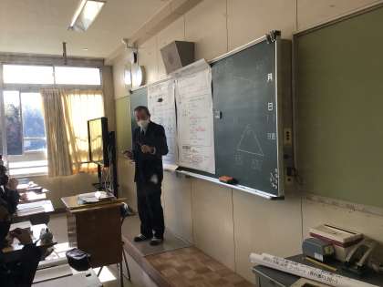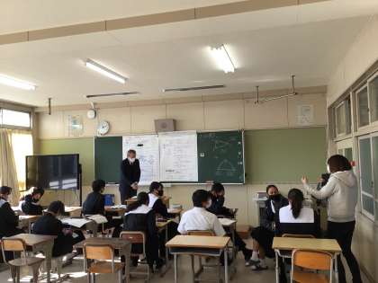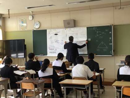 数学は、少人数授業です。発言も活発です。健康観察で巡回している養護教諭の先生も一緒に授業に参加しています。