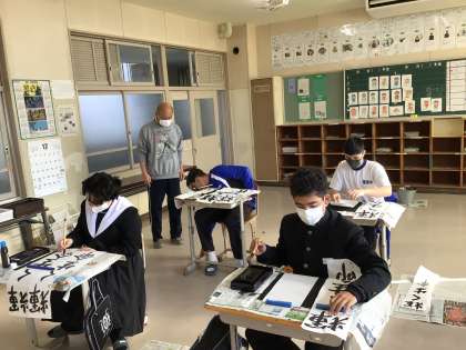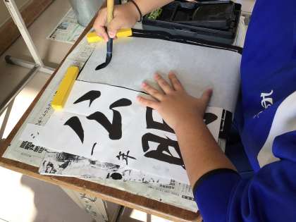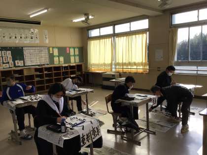 書き初めの練習をしています。慣れない習字ですが、真剣です。