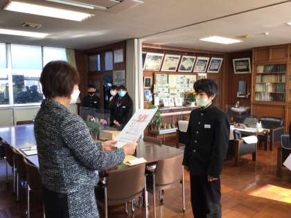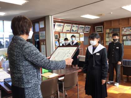 校長室で各種表彰を行いました。