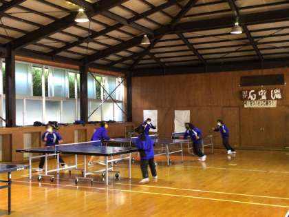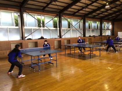 卓球部は、準備運動とトレーニングをしています。