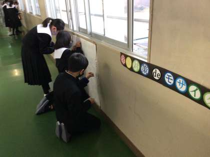 1年生は、学習の成果をモザイクアートにしています。