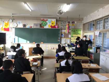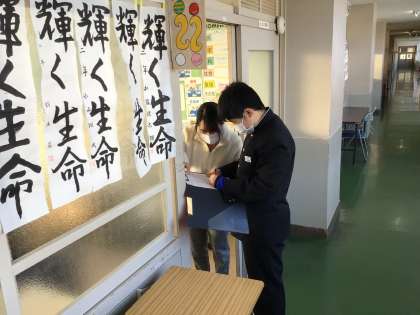 朝の会では、生徒が健康観察をしっかり行い、担任の先生と確認します。