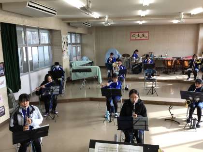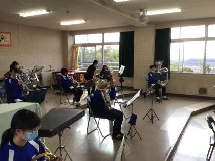 吹奏楽部の練習です。換気もしっかり行って活動しています。