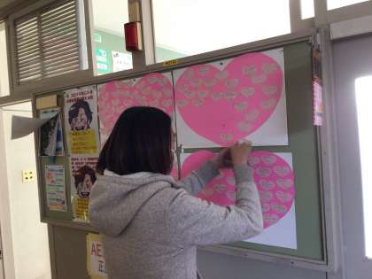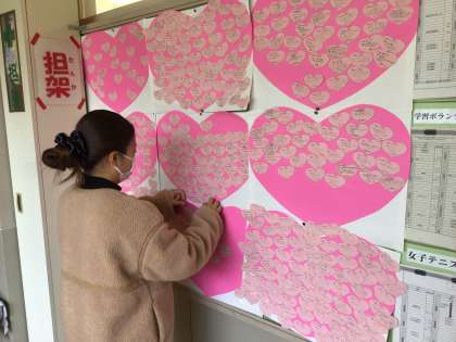 保健スタッフの「愛メッセージ」が保健室前の掲示板に掲示してあります。たくさんのあたたかいメッセージが寄せられています。