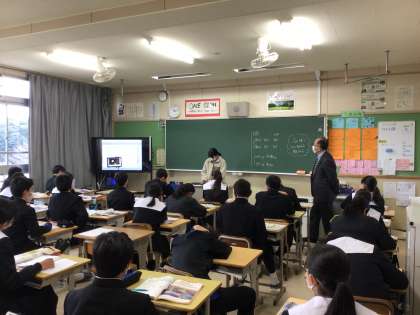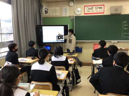 電子黒板の英文を読み取っています。リモートでもつないでいます。