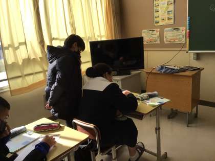 社会科のクロス取り出し授業です。少人数で日本語を強化しながら学習しています。