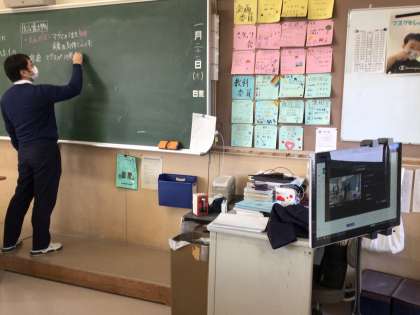 理科の授業です。欠席している生徒もリモート参加です。