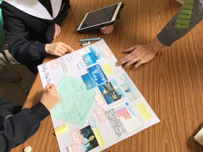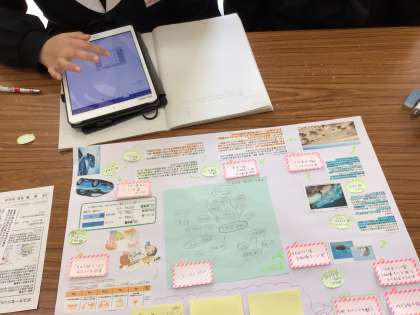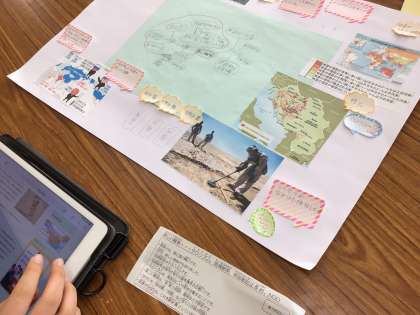 社会科のテーマ学習です。貧困、環境、温暖化など重要なテーマで取り組んでいます。