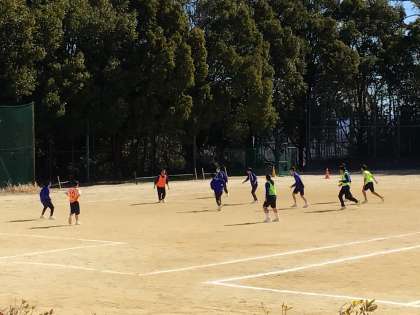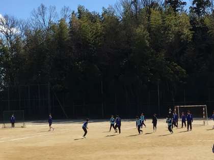 体育のサッカーです。風は少しありますが気持ちのいい天気です。